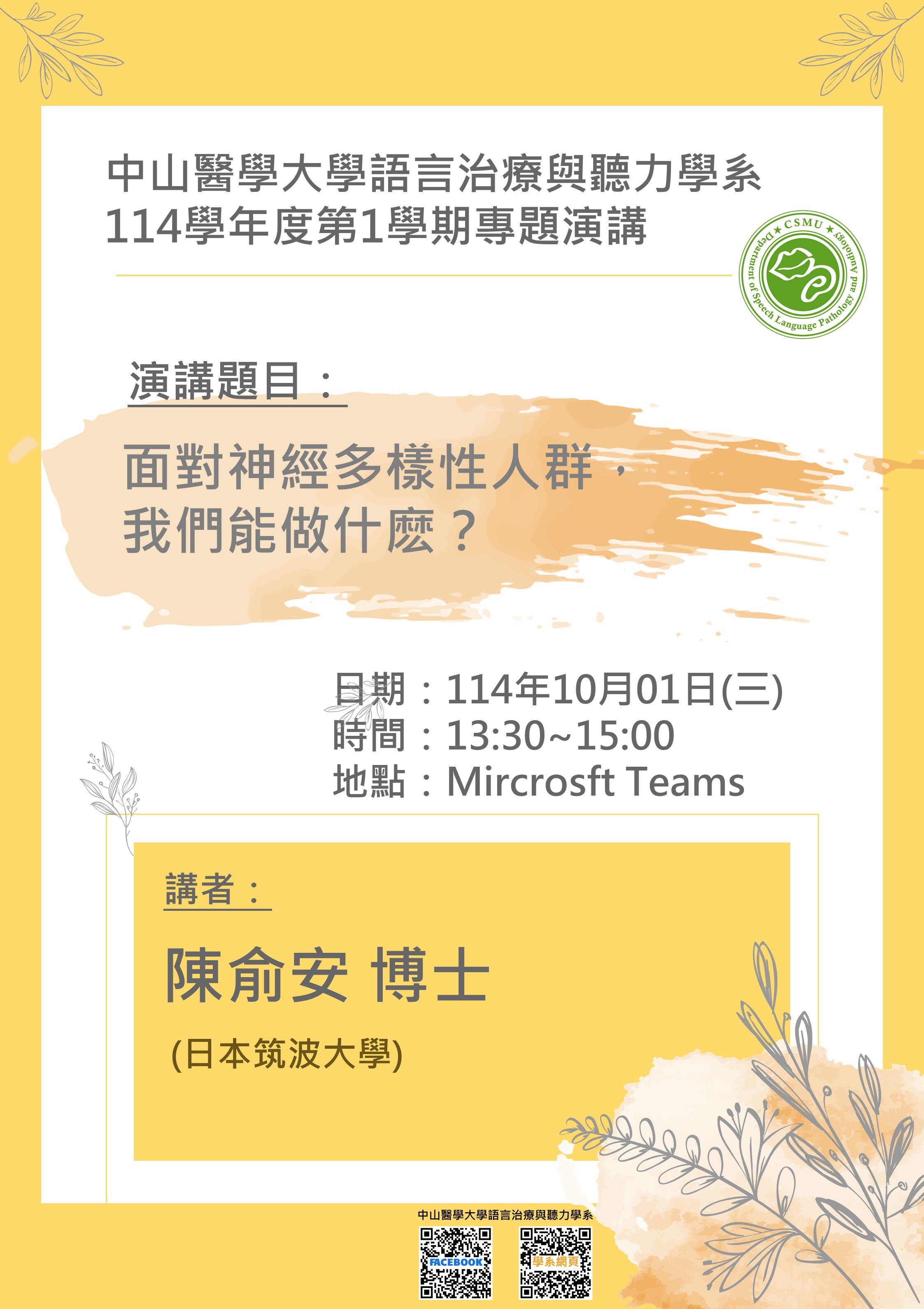 【專題演講】114/10/01 (三) 陳俞安博士線上專題演講