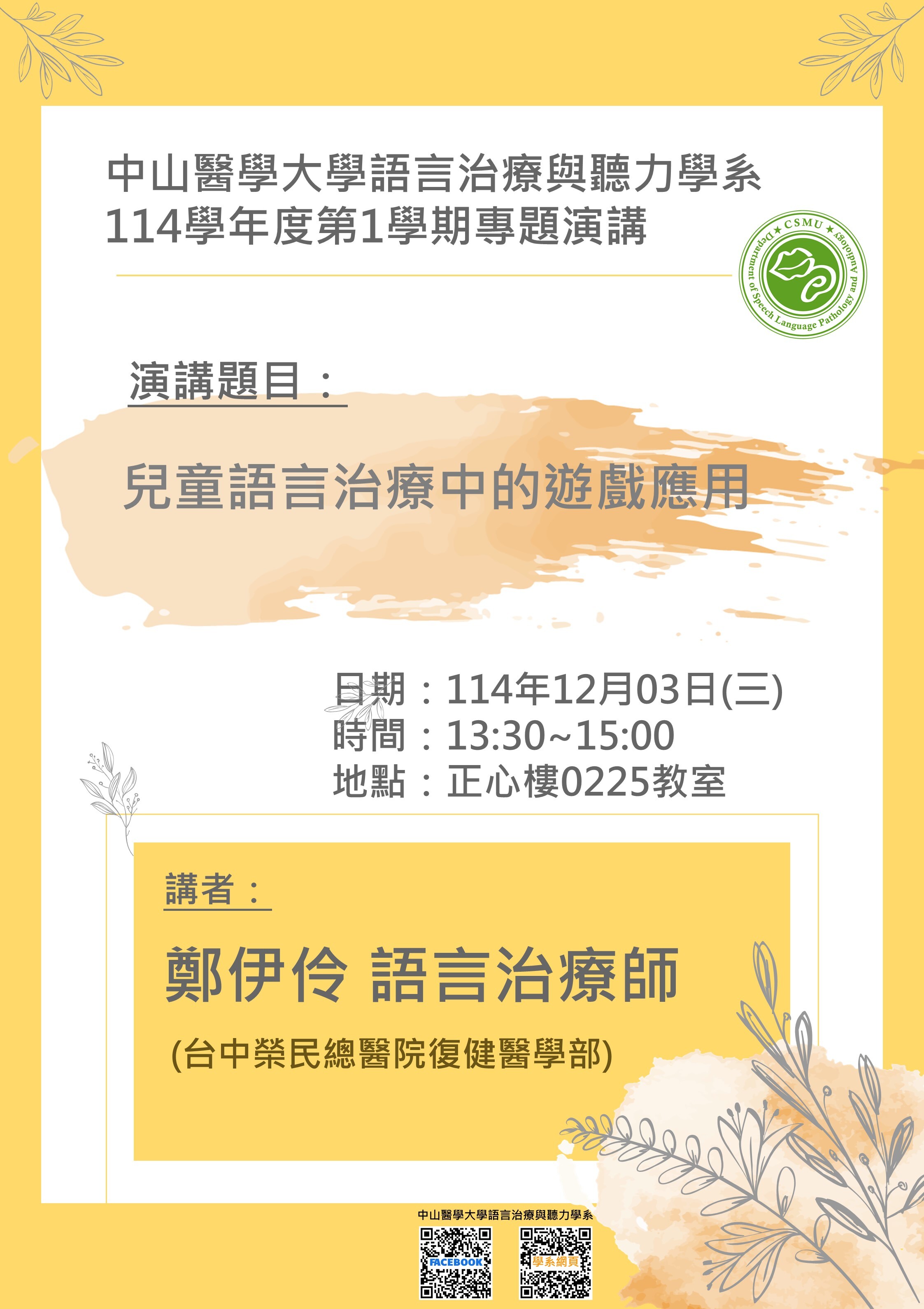 【專題演講】114/12/03(三)鄭伊伶語言治療師專題演講