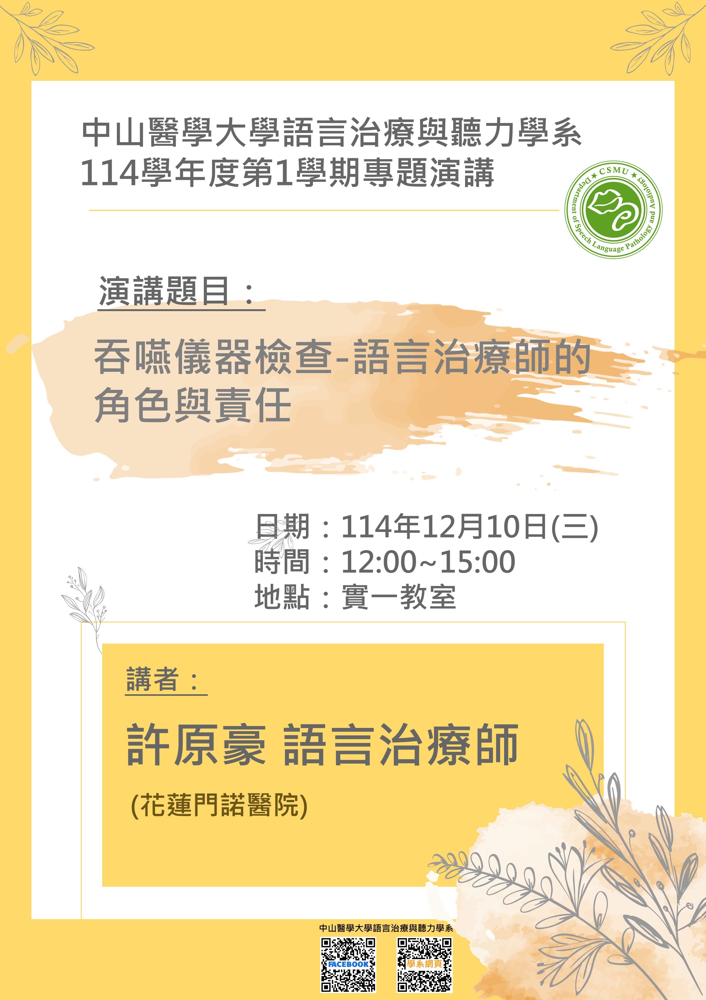 【專題演講】114/12/10(三)許原豪語言治療師專題演講